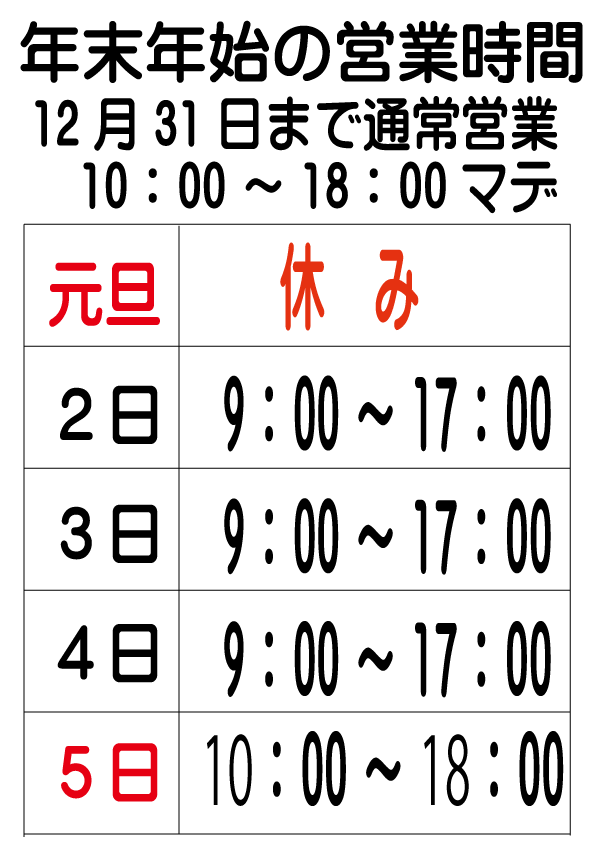 admin2025-12-21 07:29:172025-12-21 07:29:17年末年始の営業予定